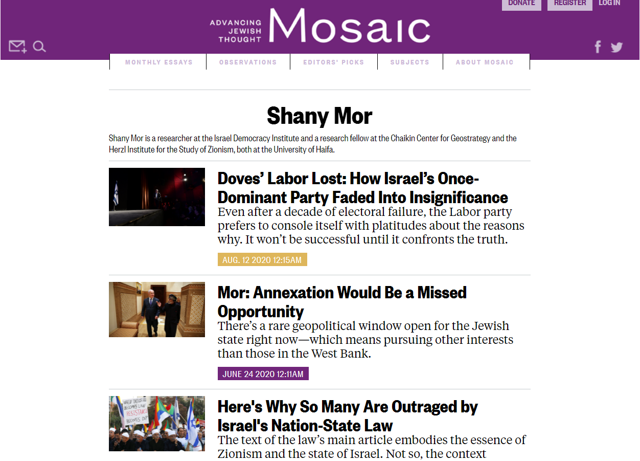 Since completing his doctorate at Oxford in Politics and International Relations, Mor has been an in-demand policy analyst in Israel and around the world, appearing regularly on a wide range of radio shows, television programs and think-tank panels in English, Hebrew, and French, while writing for countless publications including numerous articles with frequent collaborator and former Israeli MK Einat Wilf.